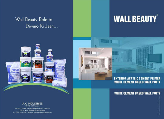 Wall Beauty is the Product of A.K. INDUSTRIES. The Company has been established as the reputed manufacture and exportes of premium quality white cement based wall putty, plaster of paris, water based primer, water proofing, product under the name of wall beauty.